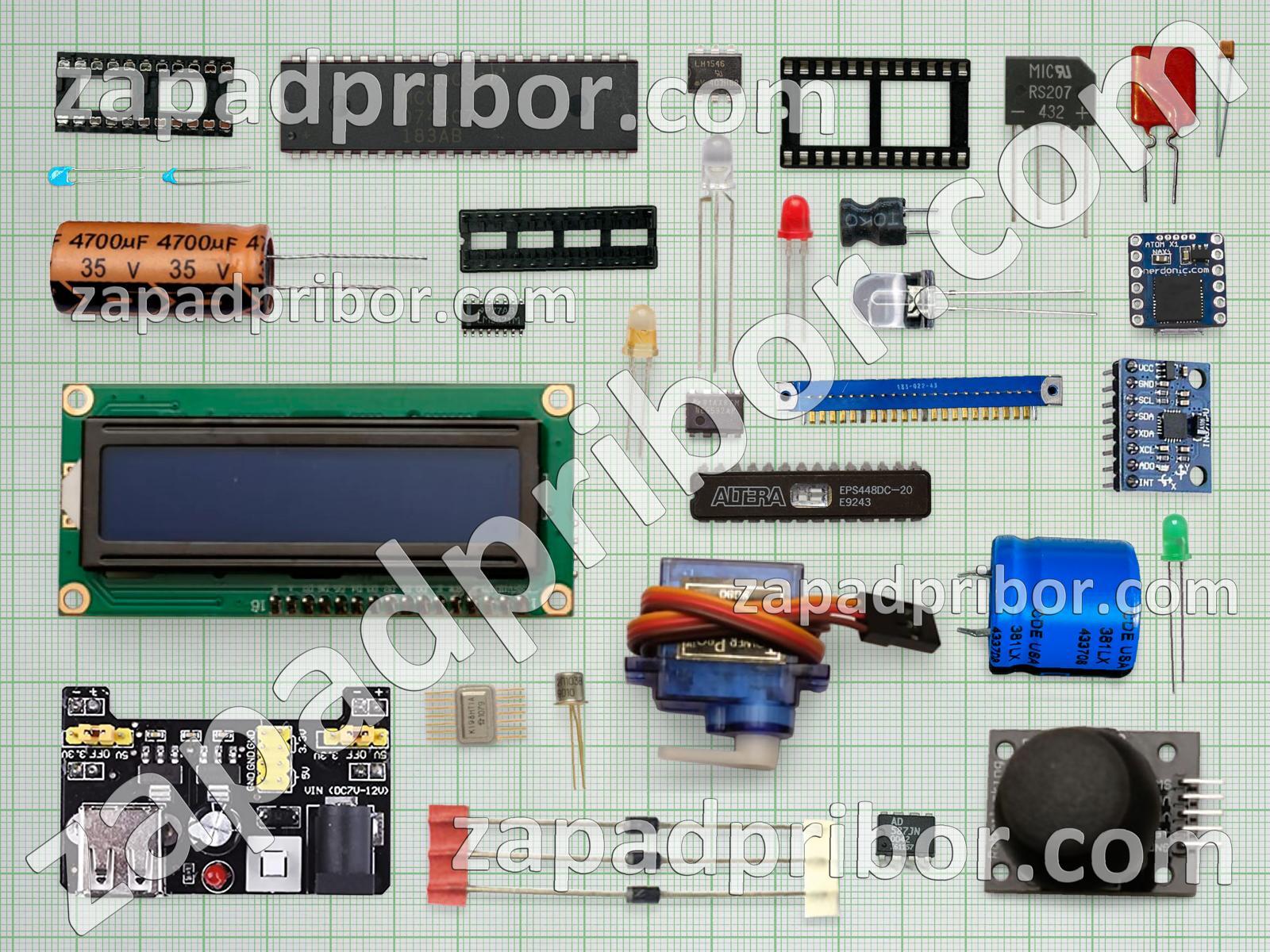 Кроме этих радиодеталей на нашем сайте вы сможете найти большой перечень компонентов. Осуществляйте поиск по основным типам радиодеталей таких как трансформатор, дисплей, индуктивность, диод, контакты, соединитель, резонатор, экран, индикатор, тиристор, диодный мост, колодки, микросхема, резистор, реле, светодиод, усилитель, кнопка, конденсатор, транзистор, переключатель, датчик, фотодиод, разъем, адаптер, преобразователь, дроссель, тумблер и другие.