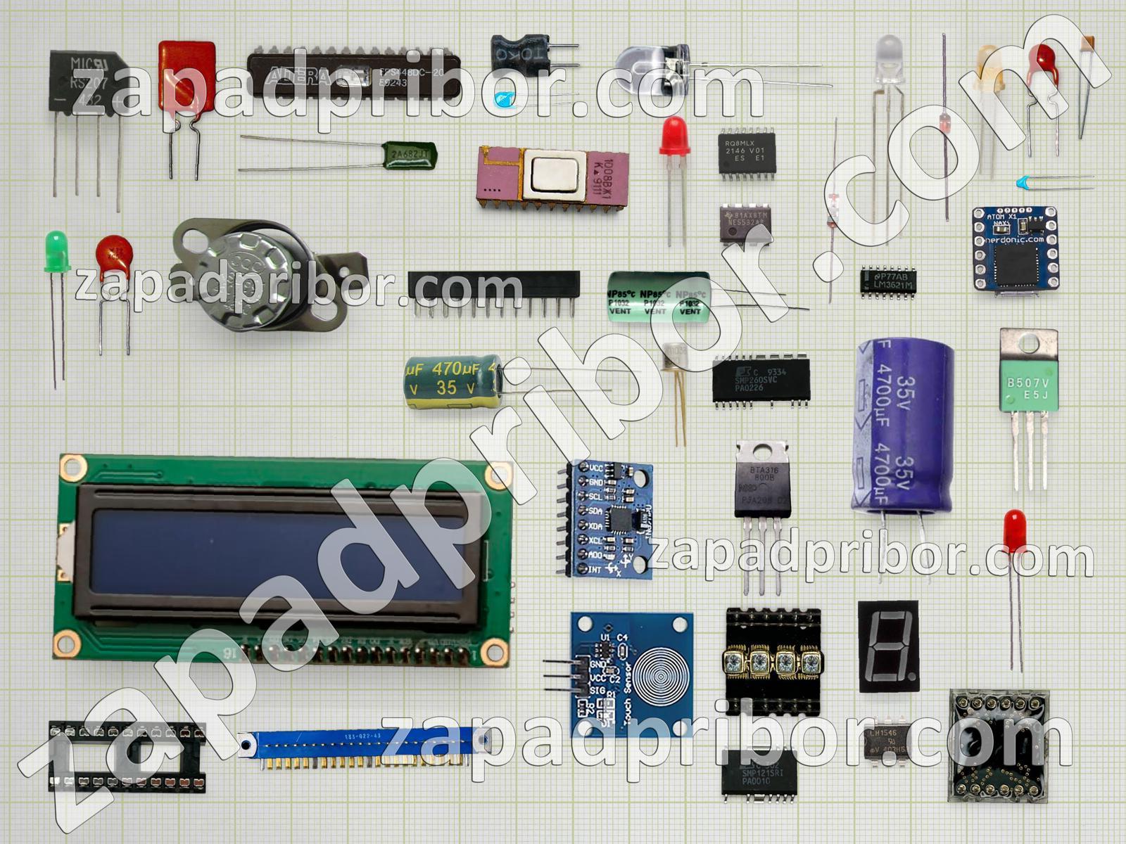 Кроме этих радиодеталей на нашем сайте вы сможете найти большой перечень компонентов. Осуществляйте поиск по основным типам радиодеталей таких как индуктивность, соединитель, контакты, усилитель, тумблер, дисплей, светодиод, транзистор, дроссель, индикатор, фотодиод, тиристор, датчик, реле, экран, кнопка, резистор, колодки, диодный мост, разъем, адаптер, микросхема, трансформатор, преобразователь, переключатель, диод, конденсатор, резонатор и другие.