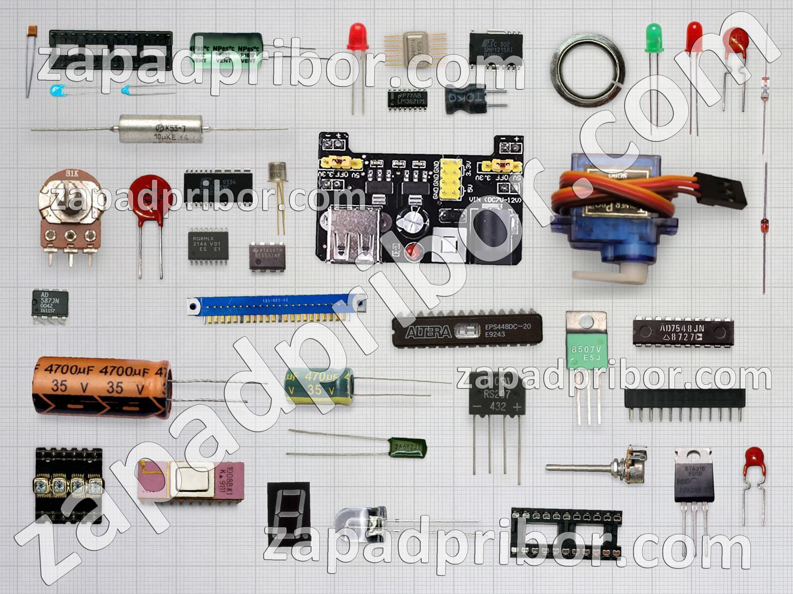Кроме этих радиодеталей на нашем сайте вы сможете найти большой перечень компонентов. Осуществляйте поиск по основным типам радиодеталей таких как адаптер, экран, транзистор, дисплей, разъем, контакты, микросхема, диодный мост, реле, конденсатор, усилитель, преобразователь, тиристор, переключатель, кнопка, дроссель, датчик, диод, трансформатор, тумблер, индуктивность, колодки, индикатор, резонатор, резистор, светодиод, соединитель, фотодиод и другие.