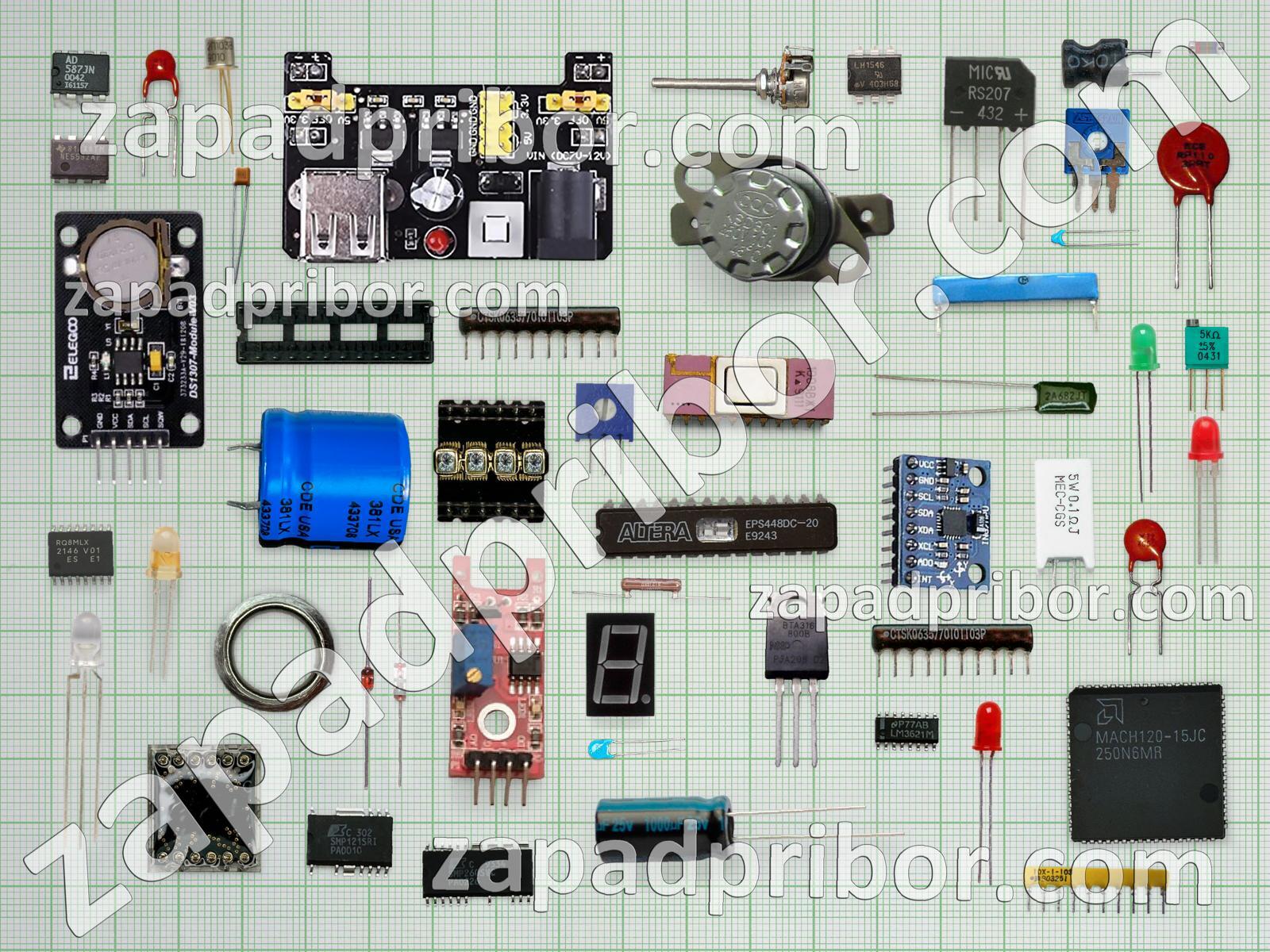Кроме этих радиодеталей на нашем сайте вы сможете найти большой перечень компонентов. Осуществляйте поиск по основным типам радиодеталей таких как дроссель, микросхема, адаптер, резонатор, тиристор, трансформатор, разъем, диод, колодки, конденсатор, тумблер, фотодиод, дисплей, транзистор, переключатель, контакты, светодиод, резистор, диодный мост, индуктивность, датчик, преобразователь, реле, соединитель, экран, кнопка, усилитель, индикатор и другие.