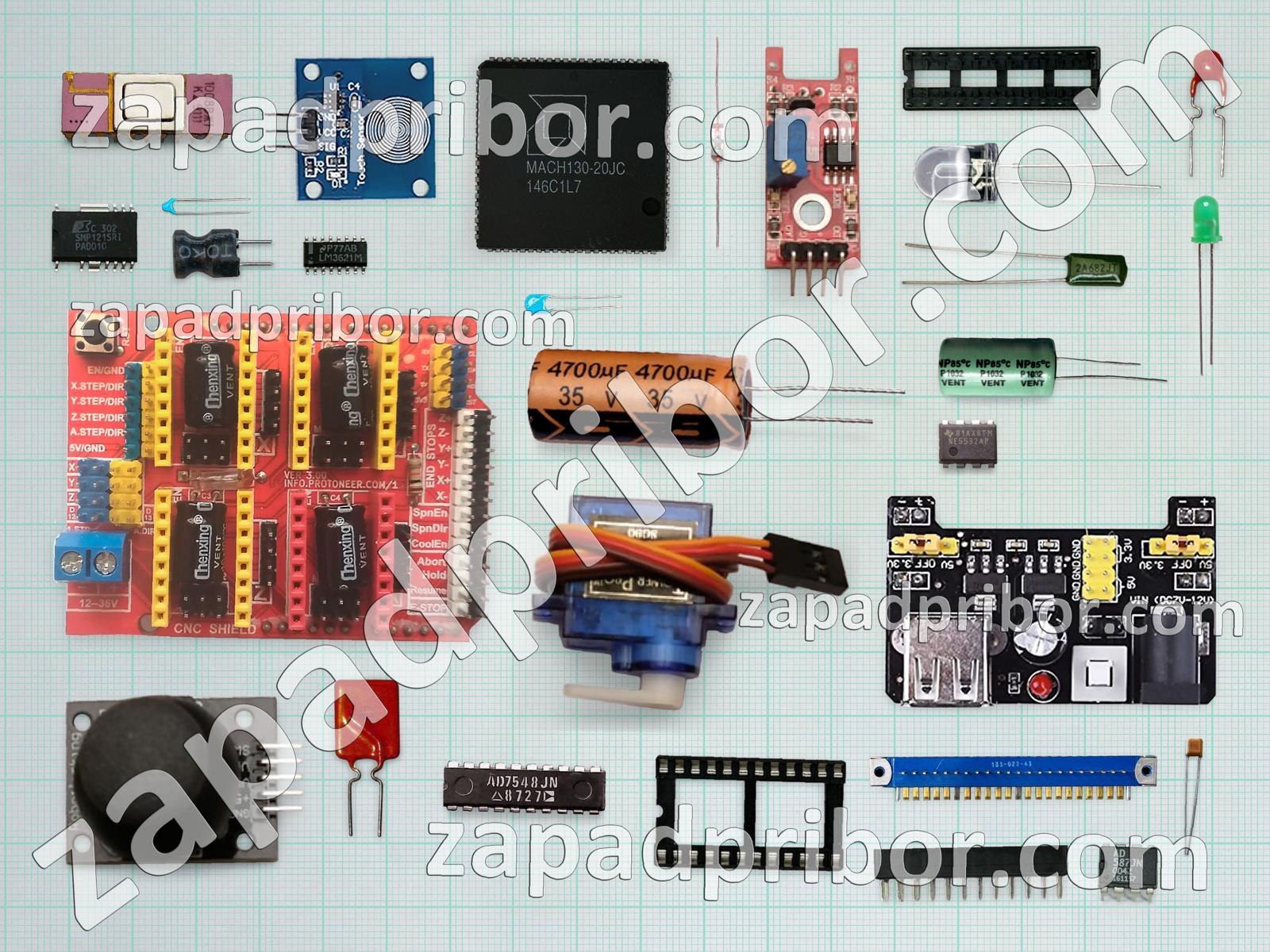 Кроме этих радиодеталей на нашем сайте вы сможете найти большой перечень компонентов. Осуществляйте поиск по основным типам радиодеталей таких как преобразователь, экран, контакты, резистор, дисплей, адаптер, фотодиод, кнопка, диод, трансформатор, тумблер, светодиод, индуктивность, усилитель, транзистор, конденсатор, дроссель, соединитель, резонатор, тиристор, диодный мост, колодки, реле, датчик, индикатор, разъем, переключатель, микросхема и другие.