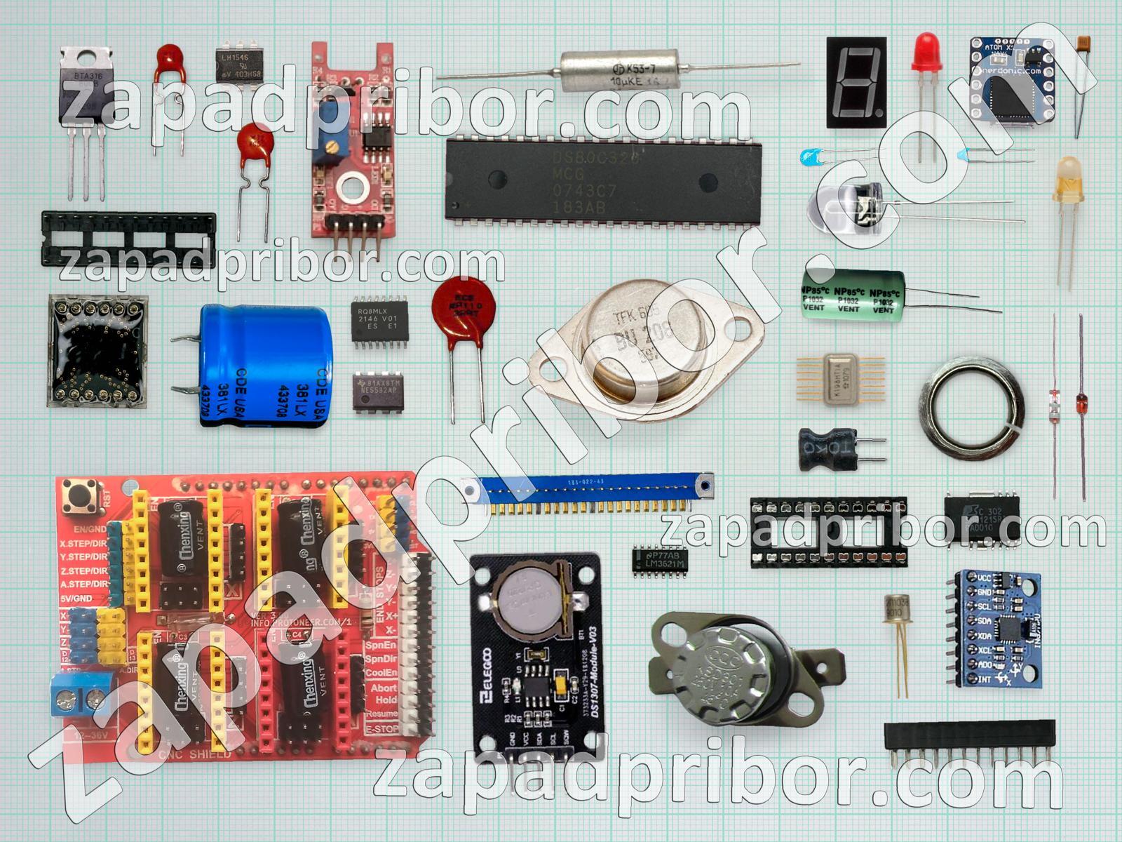 Кроме этих радиодеталей на нашем сайте вы сможете найти большой перечень компонентов. Осуществляйте поиск по основным типам радиодеталей таких как дисплей, разъем, диод, датчик, резистор, индуктивность, усилитель, переключатель, колодки, диодный мост, фотодиод, адаптер, микросхема, конденсатор, трансформатор, контакты, светодиод, экран, соединитель, кнопка, тумблер, тиристор, индикатор, реле, преобразователь, дроссель, резонатор, транзистор и другие.