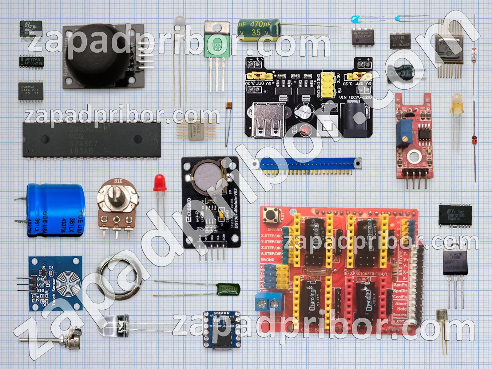 Кроме этих радиодеталей на нашем сайте вы сможете найти большой перечень компонентов. Осуществляйте поиск по основным типам радиодеталей таких как экран, преобразователь, фотодиод, резонатор, переключатель, тумблер, контакты, индикатор, кнопка, индуктивность, микросхема, адаптер, дроссель, резистор, диодный мост, колодки, трансформатор, диод, разъем, светодиод, дисплей, транзистор, тиристор, усилитель, датчик, реле, конденсатор, соединитель и другие.