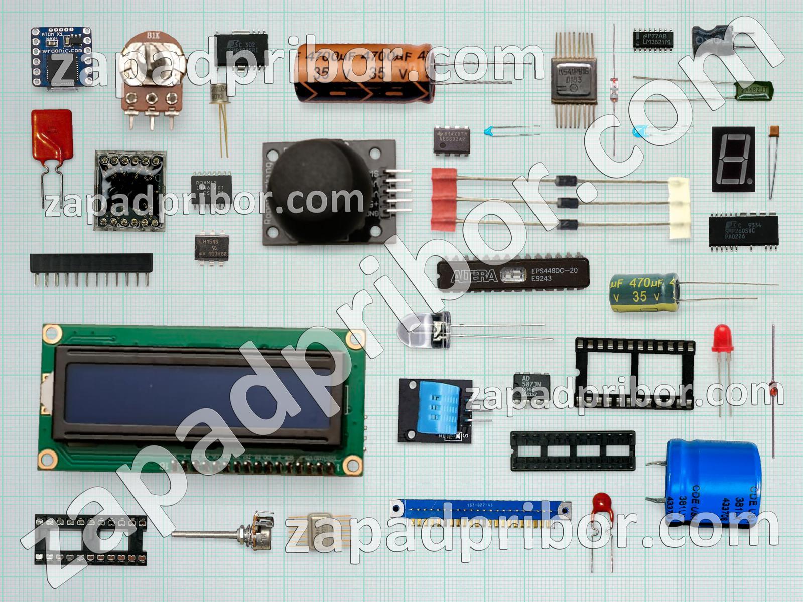 Кроме этих радиодеталей на нашем сайте вы сможете найти большой перечень компонентов. Осуществляйте поиск по основным типам радиодеталей таких как экран, дисплей, дроссель, соединитель, колодки, тумблер, светодиод, диод, контакты, конденсатор, индикатор, фотодиод, реле, кнопка, преобразователь, резистор, адаптер, индуктивность, переключатель, транзистор, разъем, резонатор, датчик, трансформатор, диодный мост, микросхема, усилитель, тиристор и другие.