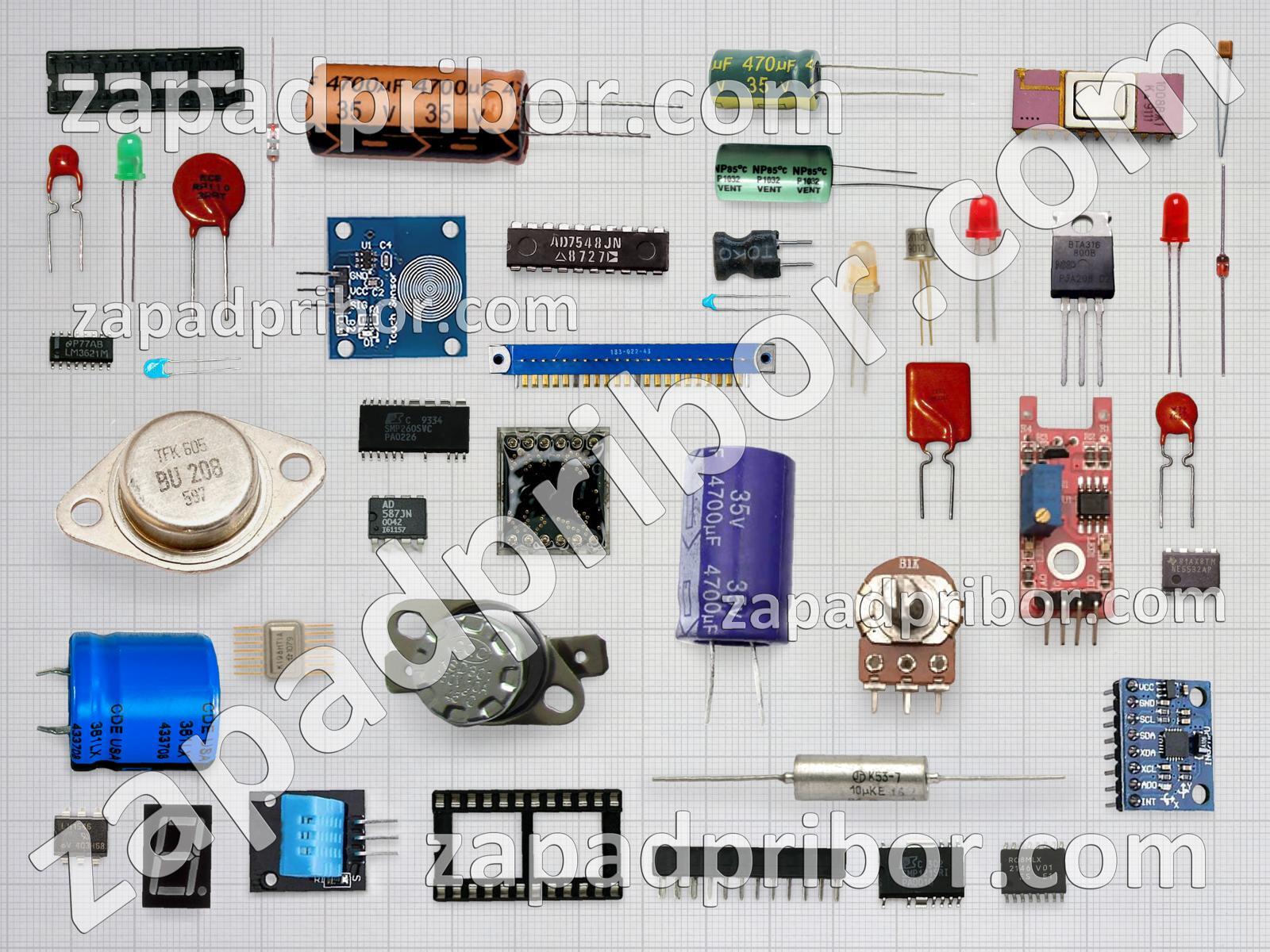 Кроме этих радиодеталей на нашем сайте вы сможете найти большой перечень компонентов. Осуществляйте поиск по основным типам радиодеталей таких как кнопка, транзистор, индуктивность, резистор, реле, датчик, экран, дисплей, диод, усилитель, микросхема, резонатор, разъем, тумблер, конденсатор, диодный мост, фотодиод, преобразователь, контакты, трансформатор, индикатор, тиристор, колодки, адаптер, переключатель, дроссель, соединитель, светодиод и другие.
