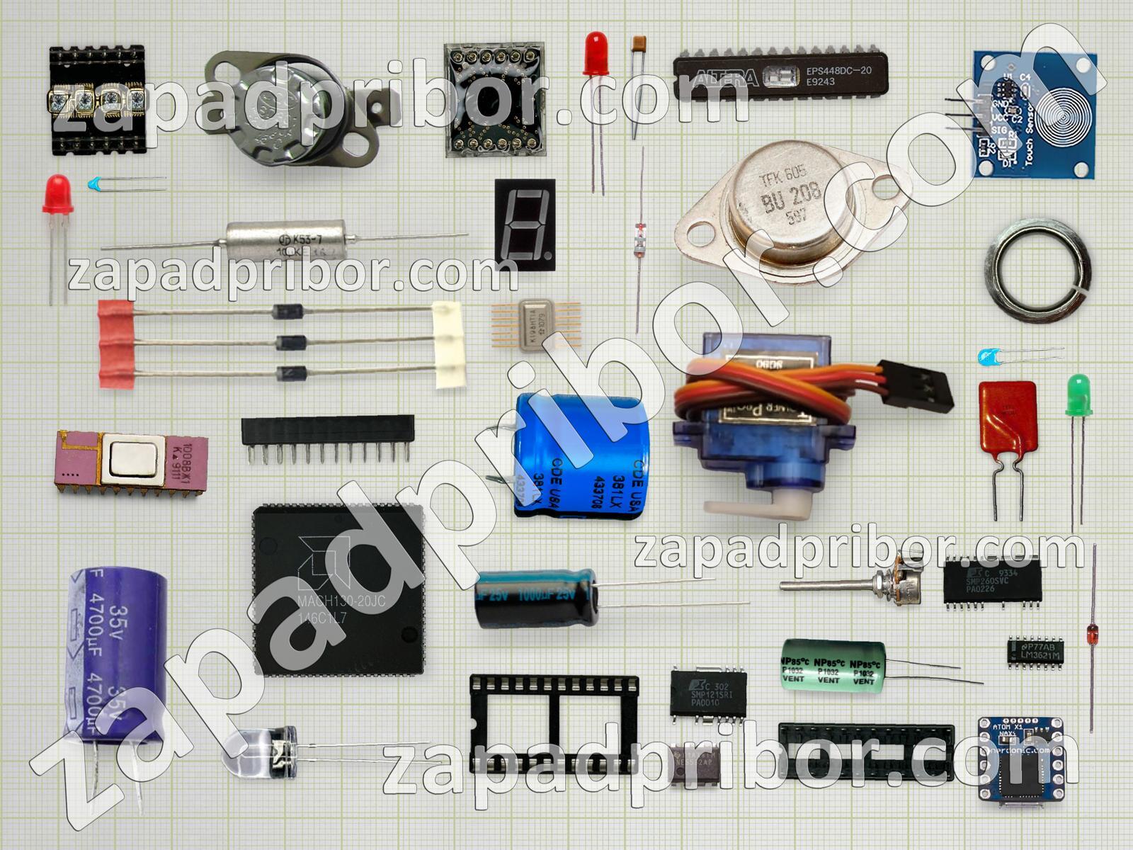 Кроме этих радиодеталей на нашем сайте вы сможете найти большой перечень компонентов. Осуществляйте поиск по основным типам радиодеталей таких как дисплей, микросхема, транзистор, кнопка, соединитель, реле, светодиод, трансформатор, усилитель, колодки, резонатор, преобразователь, датчик, фотодиод, резистор, дроссель, адаптер, диодный мост, экран, диод, контакты, тиристор, тумблер, конденсатор, переключатель, индикатор, индуктивность, разъем и другие.