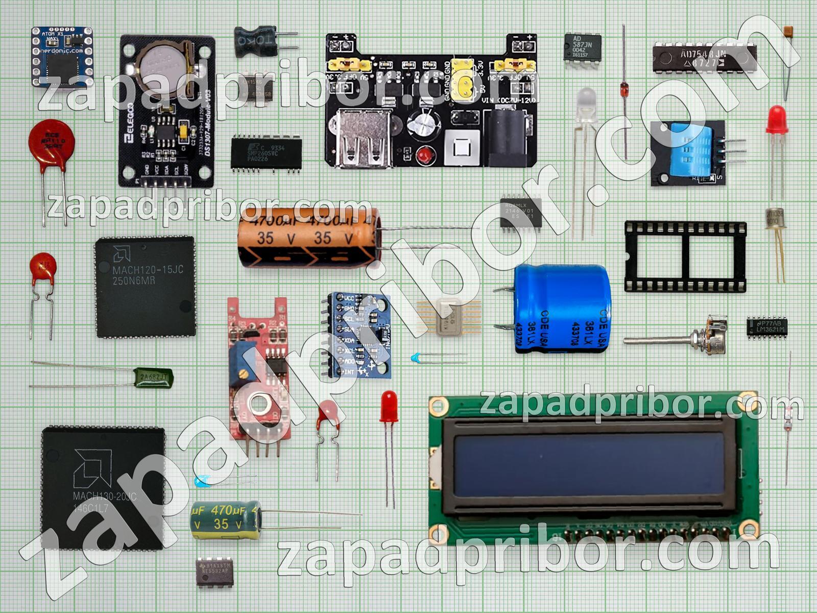 Кроме этих радиодеталей на нашем сайте вы сможете найти большой перечень компонентов. Осуществляйте поиск по основным типам радиодеталей таких как светодиод, контакты, датчик, резонатор, переключатель, колодки, транзистор, соединитель, усилитель, кнопка, индуктивность, диодный мост, конденсатор, дисплей, диод, тумблер, тиристор, дроссель, адаптер, фотодиод, экран, трансформатор, преобразователь, реле, индикатор, микросхема, резистор, разъем и другие.
