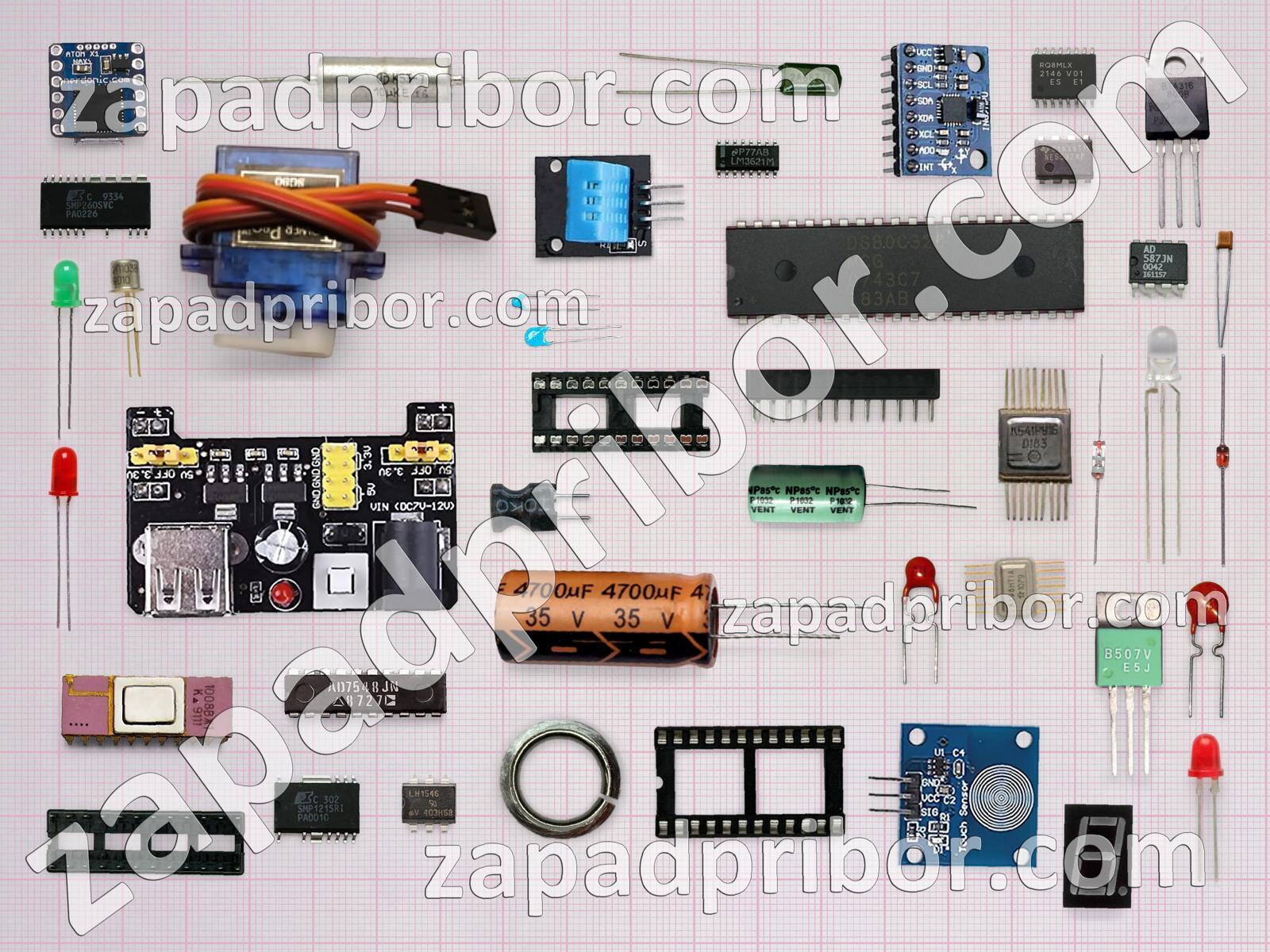 Кроме этих радиодеталей на нашем сайте вы сможете найти большой перечень компонентов. Осуществляйте поиск по основным типам радиодеталей таких как кнопка, резонатор, усилитель, экран, транзистор, трансформатор, переключатель, преобразователь, тумблер, конденсатор, резистор, светодиод, соединитель, микросхема, датчик, колодки, фотодиод, диодный мост, контакты, разъем, дроссель, адаптер, реле, дисплей, индуктивность, тиристор, индикатор, диод и другие.