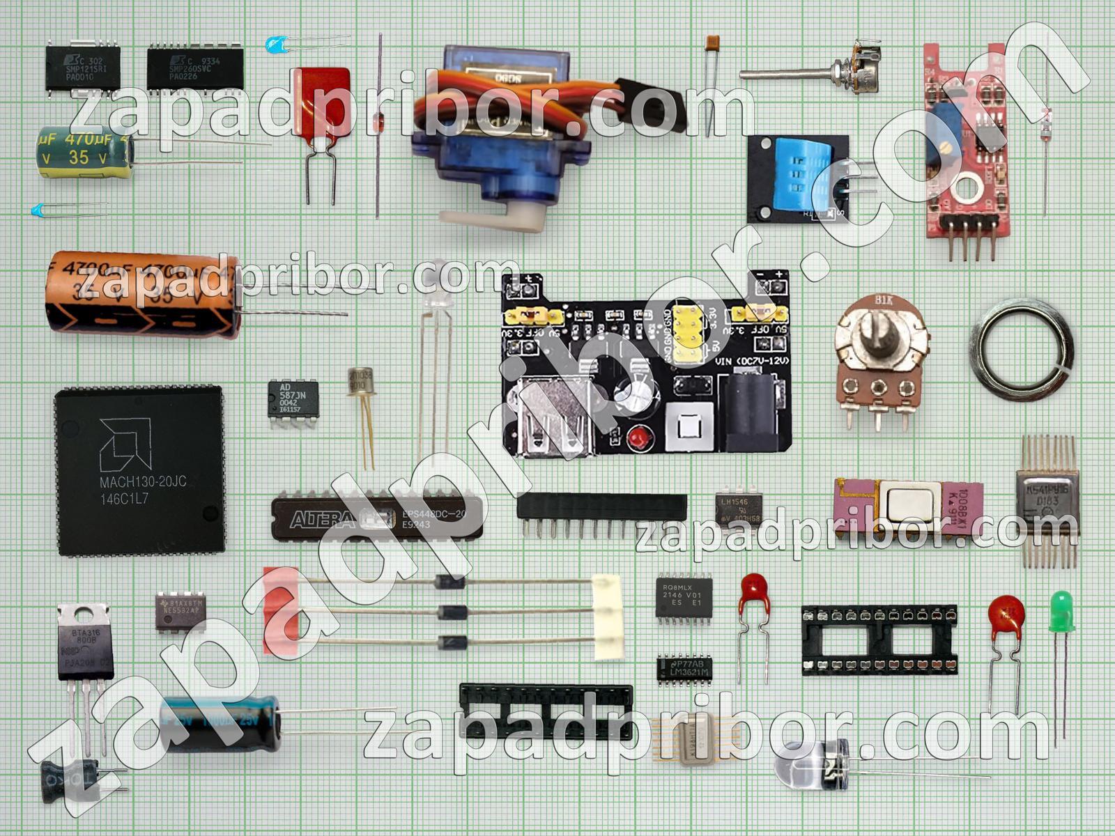Кроме этих радиодеталей на нашем сайте вы сможете найти большой перечень компонентов. Осуществляйте поиск по основным типам радиодеталей таких как диодный мост, светодиод, дроссель, индикатор, фотодиод, конденсатор, соединитель, переключатель, контакты, кнопка, микросхема, индуктивность, резонатор, разъем, датчик, усилитель, экран, преобразователь, диод, колодки, адаптер, тиристор, трансформатор, дисплей, тумблер, резистор, реле, транзистор и другие.