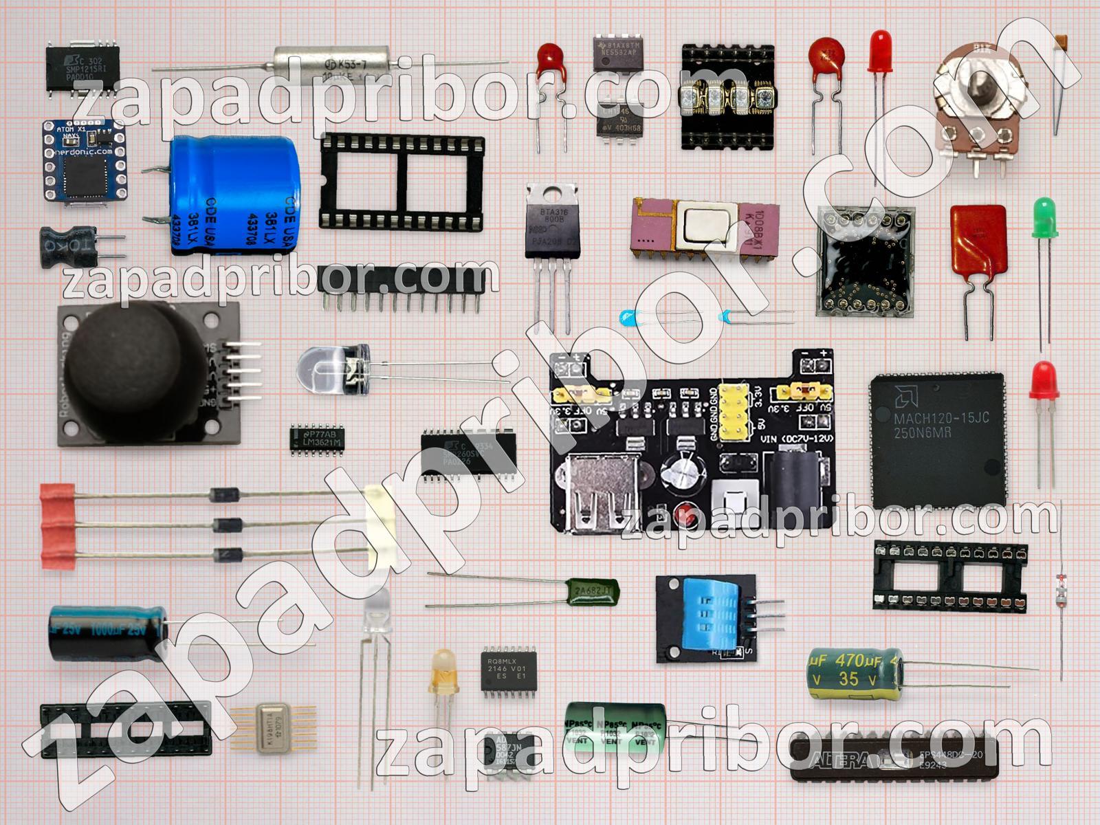 Кроме этих радиодеталей на нашем сайте вы сможете найти большой перечень компонентов. Осуществляйте поиск по основным типам радиодеталей таких как адаптер, тумблер, кнопка, конденсатор, усилитель, резистор, дроссель, колодки, датчик, преобразователь, транзистор, соединитель, реле, диодный мост, индуктивность, разъем, индикатор, экран, микросхема, резонатор, контакты, светодиод, тиристор, трансформатор, диод, дисплей, фотодиод, переключатель и другие.