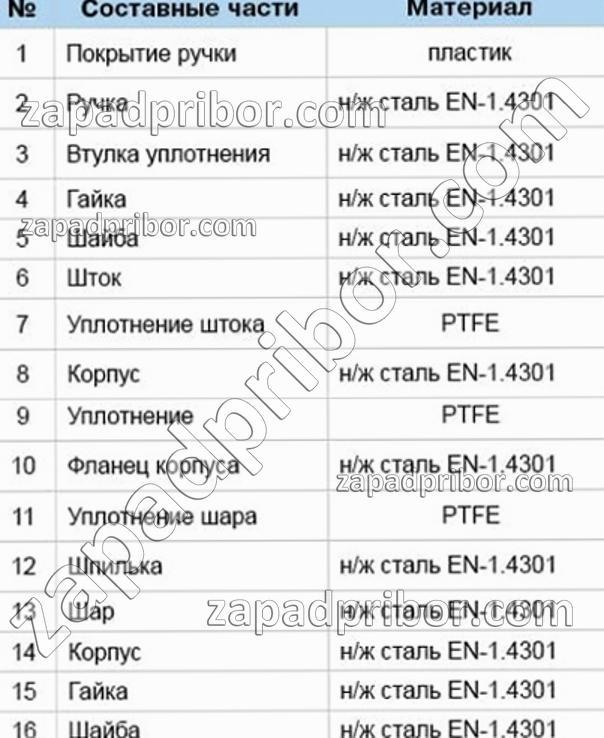 | Материал сферы штока: | нержавеющая сталь 304316 |