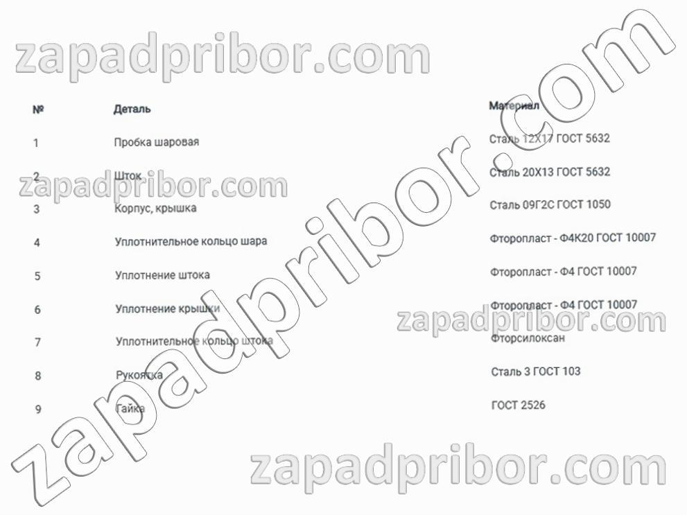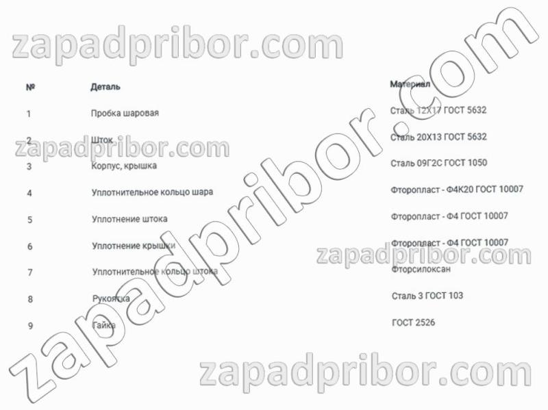| Материал сферы штока: | Сталь 20Х13 ГОСТ 5632 |