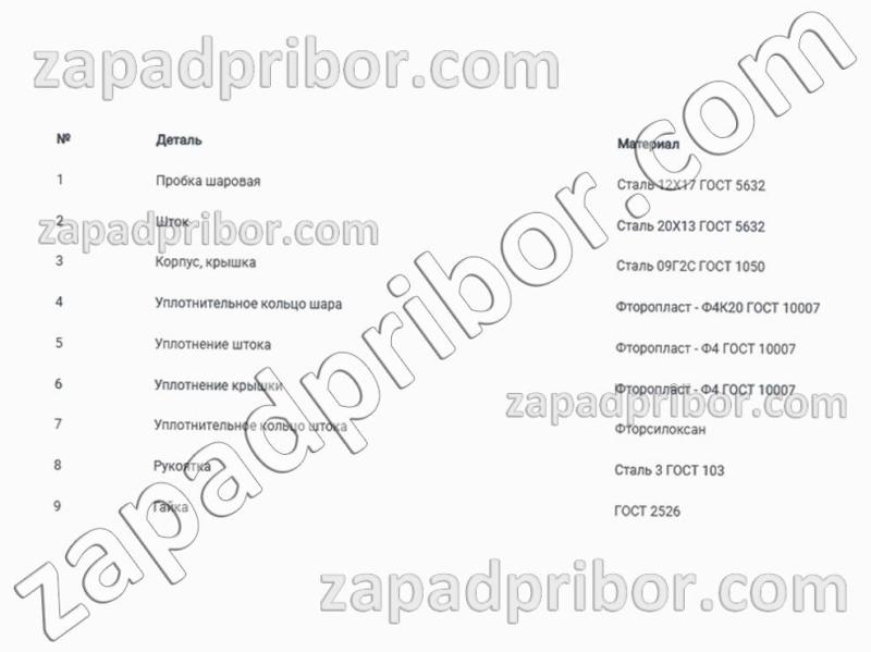 | Материал сферы штока: | Сталь 20Х13 ГОСТ 5632 |