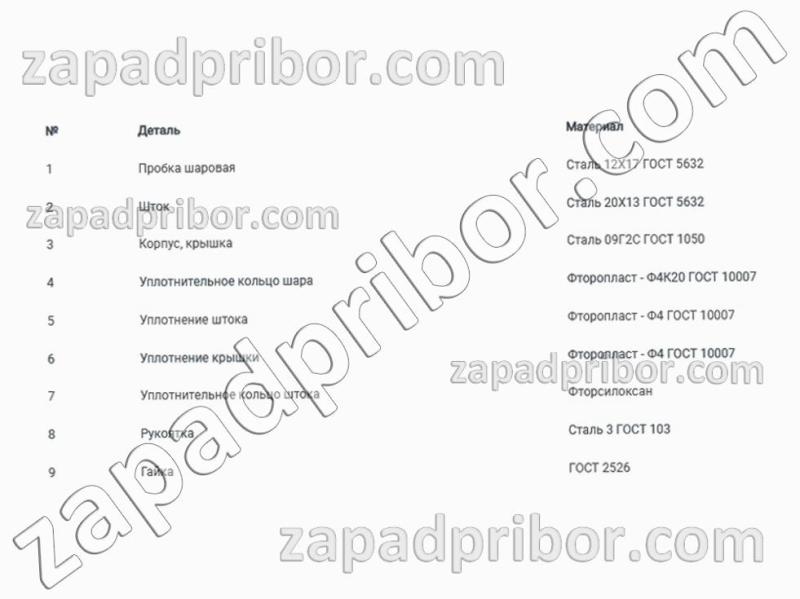 | Материал сферы штока: | Сталь 20Х13 ГОСТ 5632 |