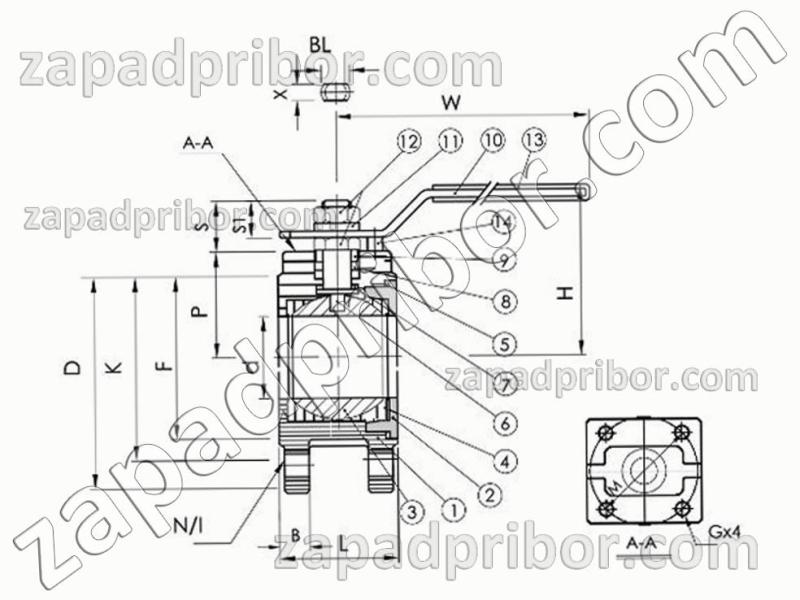 12.Гайка штока; 13.Пластиковая крышка; 14. Стоп ручки.