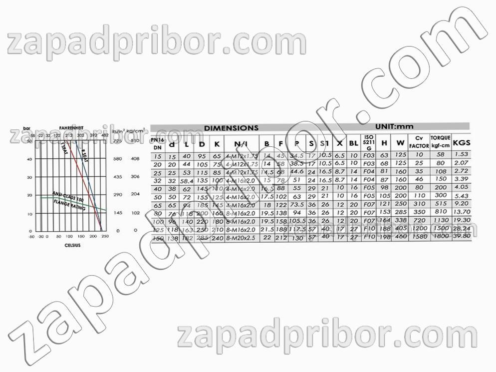 Технические характеристики крана шарового фланцевого нержавеющего ДУ15 Ру16