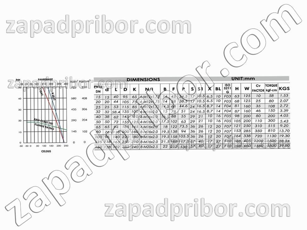 Технические характеристики крана шарового фланцевого нержавеющего ДУ200 Ру25