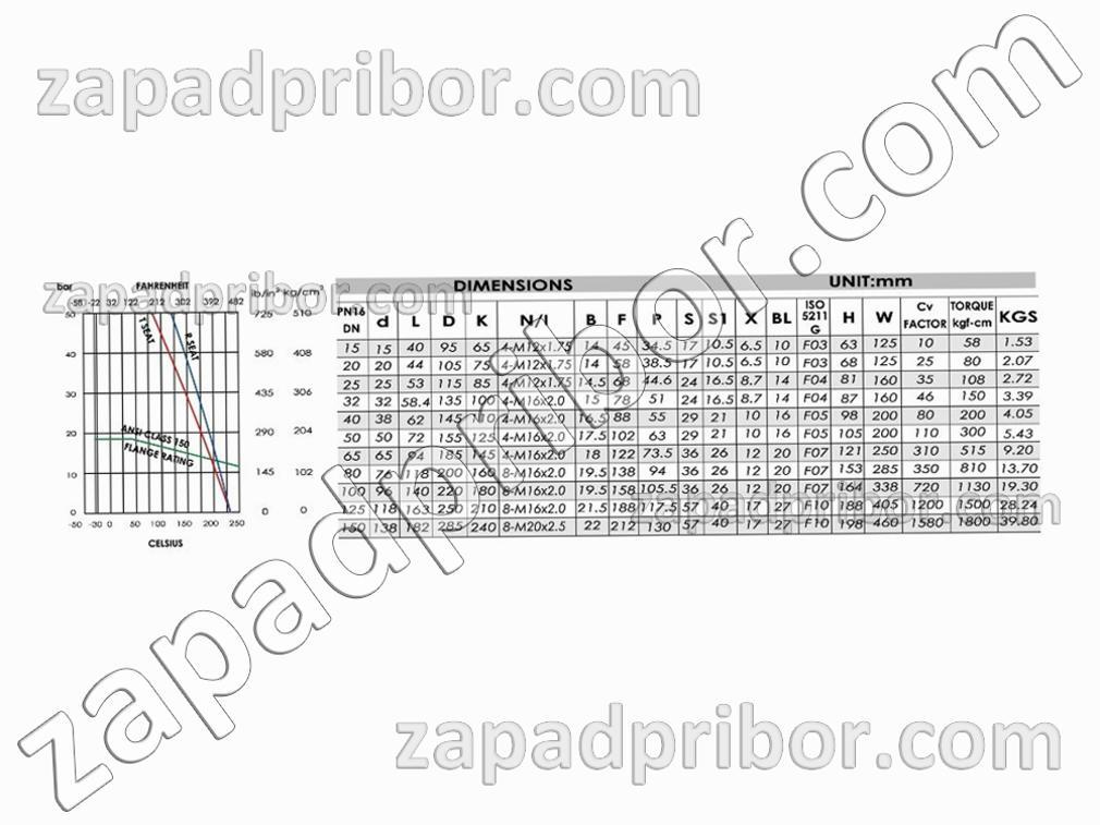 Технические характеристики крана шарового фланцевого нержавеющего ДУ40 Ру25