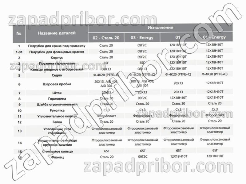 | Уплотнение крана и седла: | PTFE |