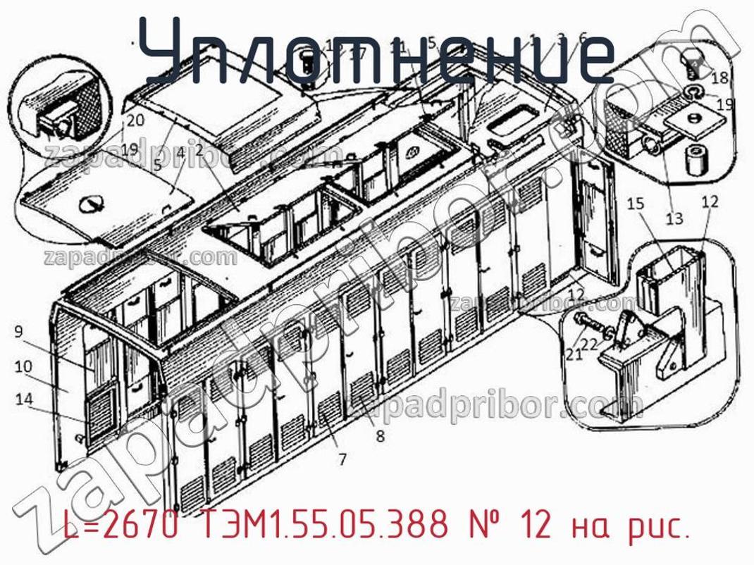 Наш отдел технического контроля гарантирует отсутствие брака или других несоответствий в технической документации или комплектации всех уплотнений представленных на нашем сайте. Чтобы заказать L=2670 ТЭМ1.55.05.388 обращайтесь в отдел продаж. Чтобы узнать цену, наличие, сроки поставки, срок гарантии и другие вопросы позвоните по телефонам указанным в контактах или оставьте заявку через форму обратной связи. Уплотнение L=2670 ТЭМ1.55.05.388, номер 12 на чертеже, Кузов над дизель-генератором ТЭМ2Т.55.01.000 и другие запасные части для , а также другие уплотнения и похожие изделия представлены на сайте zapadpribor.com.