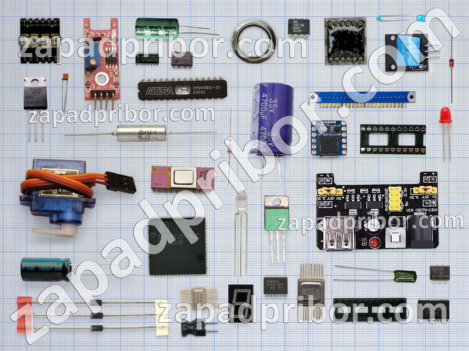 Кроме этих радиодеталей на нашем сайте вы сможете найти большой перечень компонентов. Осуществляйте поиск по основным типам радиодеталей таких как колодки, адаптер, фотодиод, разъем, индуктивность, диодный мост, соединитель, тумблер, резистор, тиристор, дисплей, конденсатор, датчик, индикатор, транзистор, резонатор, диод, кнопка, усилитель, экран, преобразователь, светодиод, трансформатор, микросхема, переключатель, реле, дроссель, контакты и другие.