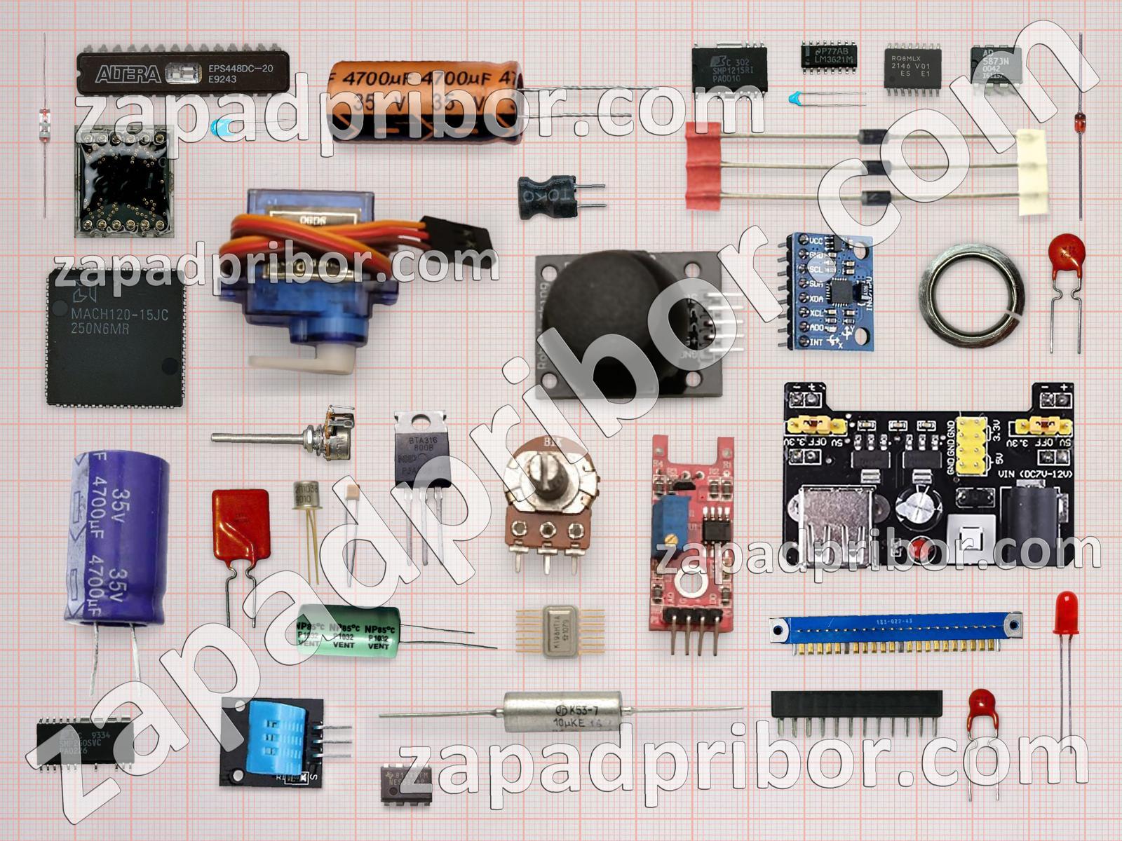 Кроме этих радиодеталей на нашем сайте вы сможете найти большой перечень компонентов. Осуществляйте поиск по основным типам радиодеталей таких как диодный мост, датчик, преобразователь, тиристор, транзистор, колодки, светодиод, тумблер, дроссель, адаптер, контакты, фотодиод, резистор, реле, разъем, индикатор, микросхема, переключатель, конденсатор, усилитель, кнопка, трансформатор, соединитель, экран, резонатор, индуктивность, диод, дисплей и другие.