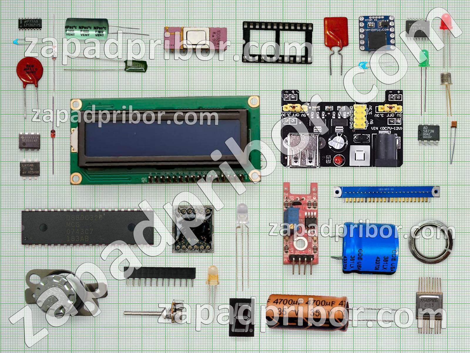 Кроме этих радиодеталей на нашем сайте вы сможете найти большой перечень компонентов. Осуществляйте поиск по основным типам радиодеталей таких как светодиод, кнопка, экран, усилитель, индуктивность, колодки, соединитель, конденсатор, диодный мост, переключатель, адаптер, тиристор, дроссель, резонатор, контакты, индикатор, резистор, дисплей, тумблер, разъем, датчик, трансформатор, реле, транзистор, диод, фотодиод, микросхема, преобразователь и другие.