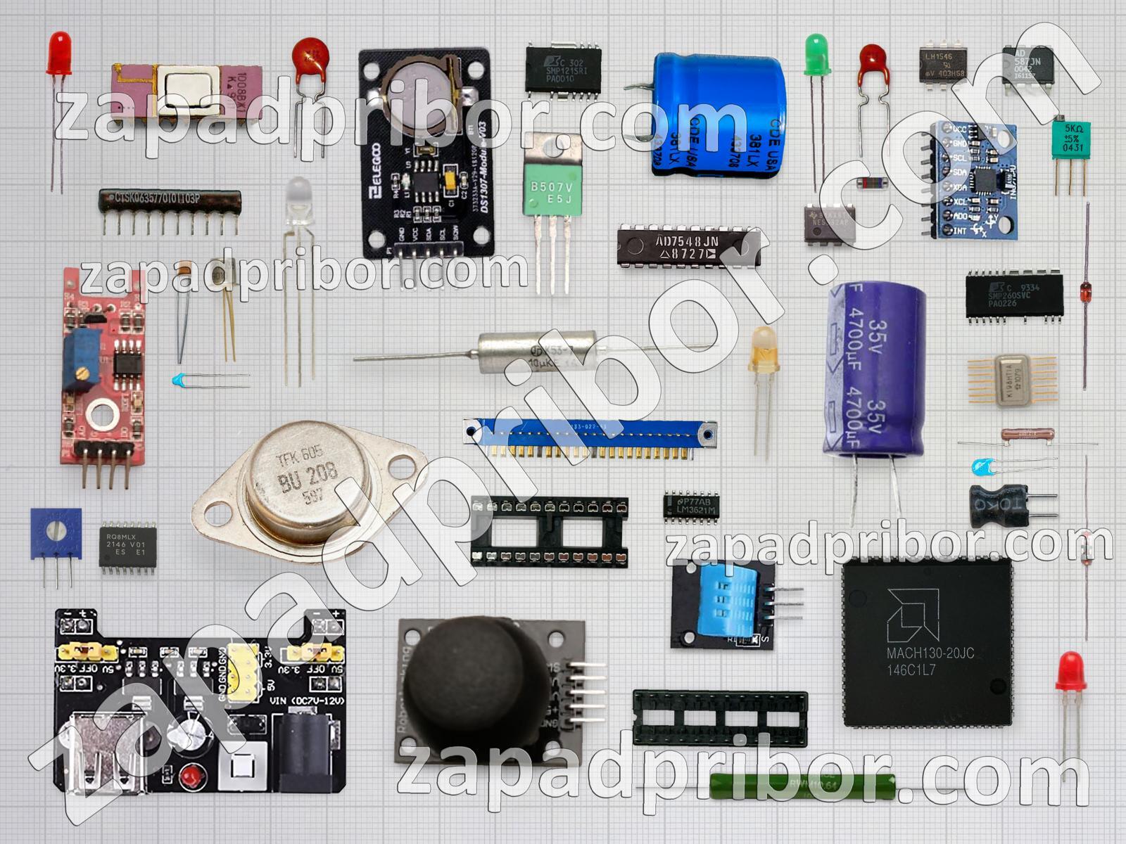 Кроме этих радиодеталей на нашем сайте вы сможете найти большой перечень компонентов. Осуществляйте поиск по основным типам радиодеталей таких как транзистор, светодиод, адаптер, контакты, датчик, усилитель, резонатор, реле, дроссель, резистор, тиристор, индикатор, соединитель, кнопка, диодный мост, экран, индуктивность, преобразователь, микросхема, конденсатор, трансформатор, тумблер, диод, дисплей, переключатель, колодки, разъем, фотодиод и другие.