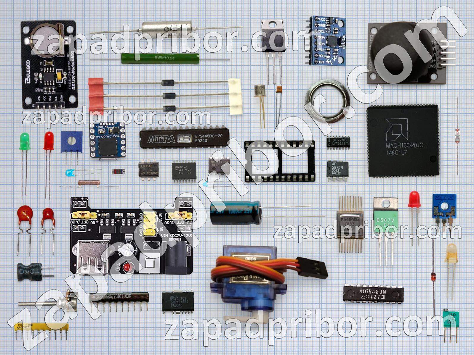 Кроме этих радиодеталей на нашем сайте вы сможете найти большой перечень компонентов. Осуществляйте поиск по основным типам радиодеталей таких как дисплей, адаптер, фотодиод, резонатор, тумблер, транзистор, кнопка, диод, переключатель, трансформатор, экран, светодиод, датчик, диодный мост, преобразователь, дроссель, микросхема, реле, индикатор, контакты, резистор, соединитель, конденсатор, колодки, усилитель, тиристор, индуктивность, разъем и другие.