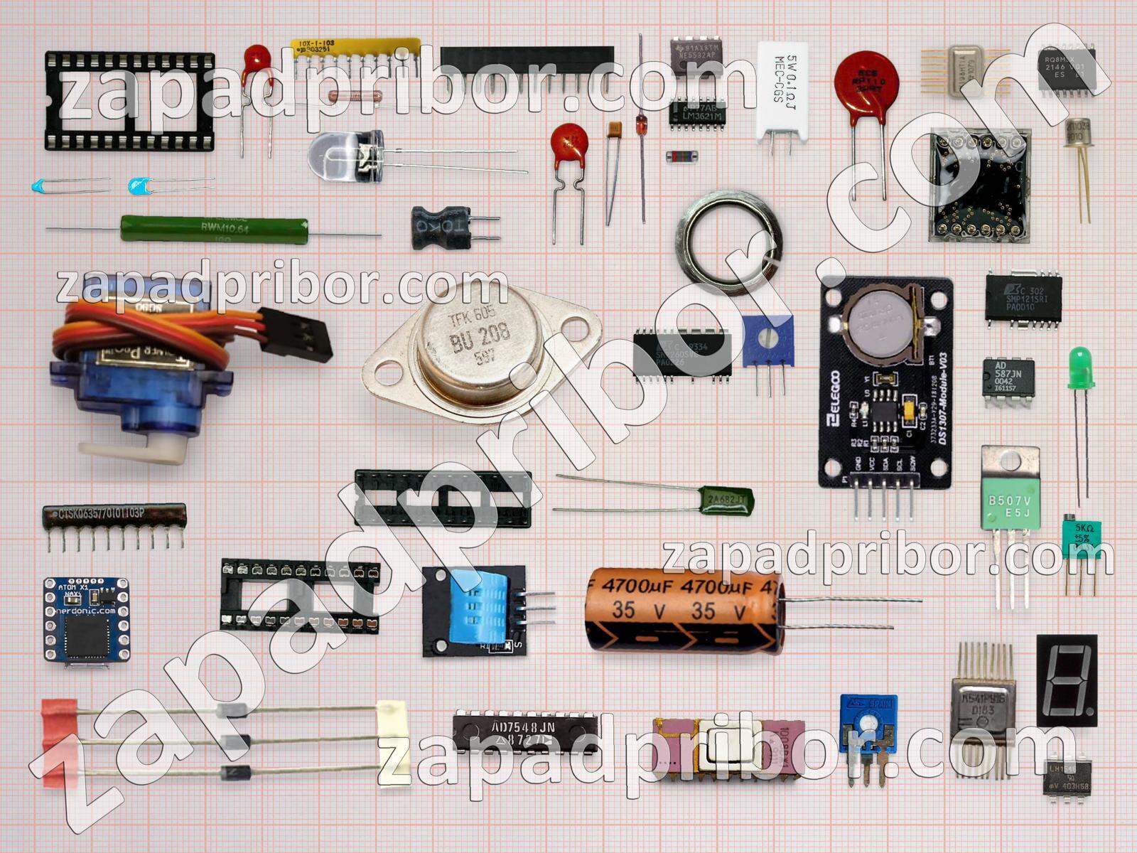 Кроме этих радиодеталей на нашем сайте вы сможете найти большой перечень компонентов. Осуществляйте поиск по основным типам радиодеталей таких как светодиод, индуктивность, транзистор, колодки, адаптер, дисплей, микросхема, кнопка, переключатель, дроссель, диод, преобразователь, усилитель, контакты, фотодиод, конденсатор, датчик, тумблер, экран, соединитель, диодный мост, трансформатор, тиристор, индикатор, разъем, реле, резистор, резонатор и другие.