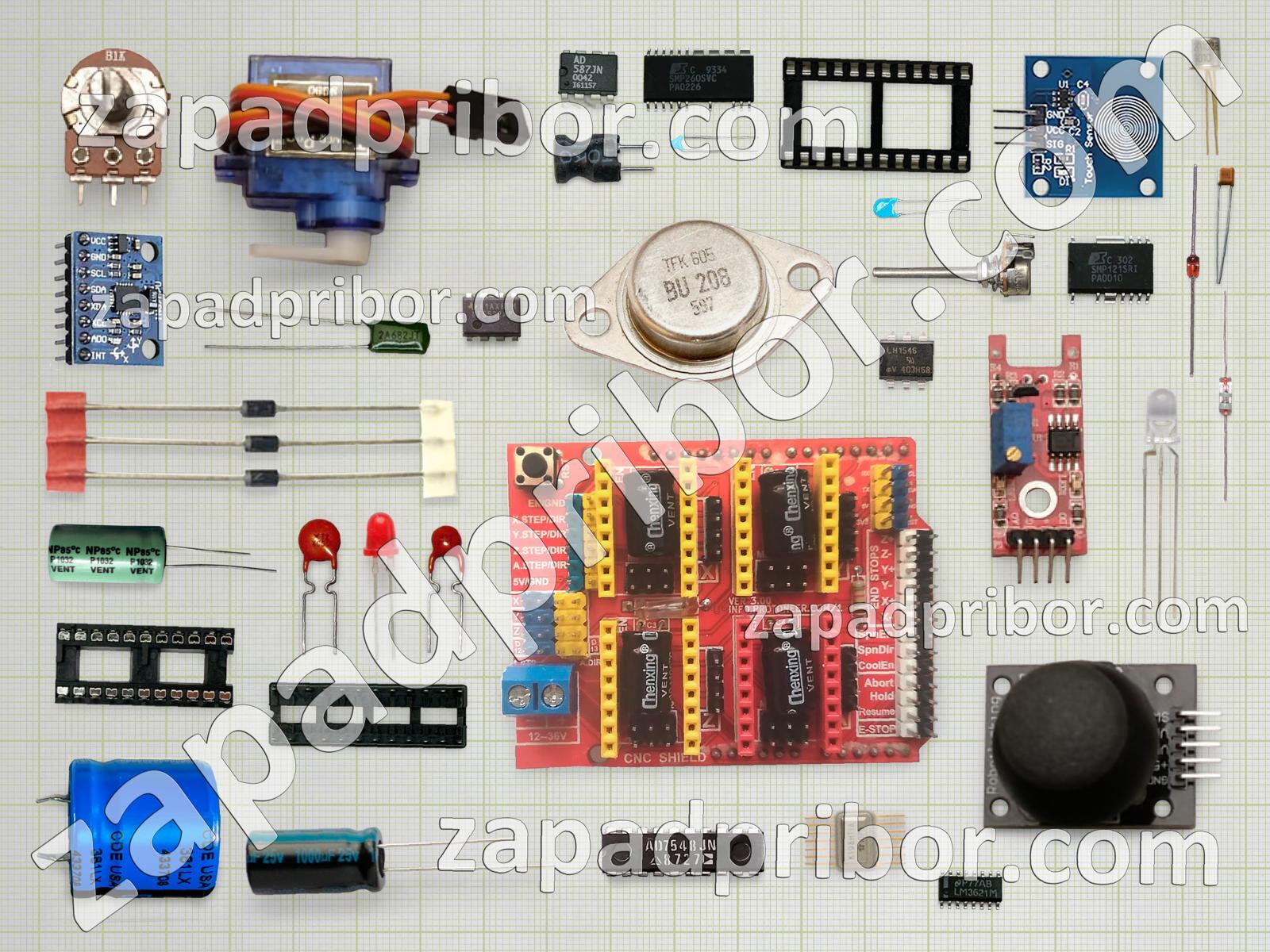 Кроме этих радиодеталей на нашем сайте вы сможете найти большой перечень компонентов. Осуществляйте поиск по основным типам радиодеталей таких как конденсатор, транзистор, датчик, кнопка, колодки, тиристор, дисплей, диод, светодиод, тумблер, трансформатор, индикатор, резистор, соединитель, индуктивность, микросхема, дроссель, диодный мост, разъем, резонатор, реле, контакты, фотодиод, усилитель, переключатель, адаптер, экран, преобразователь и другие.