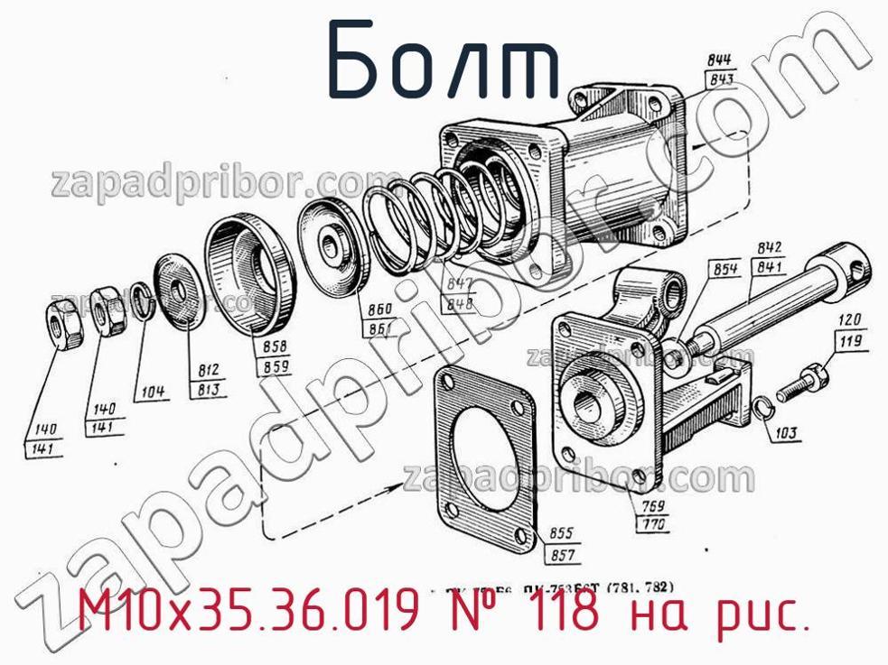 Наш отдел технического контроля гарантирует отсутствие брака или других несоответствий в технической документации или комплектации всех болтов представленных на нашем сайте. Чтобы заказать М10х35.36.019 обращайтесь в отдел продаж. Чтобы узнать цену, наличие, сроки поставки, срок гарантии и другие вопросы позвоните по телефонам указанным в контактах или оставьте заявку через форму обратной связи. Болт М10х35.36.019, номер 104 на чертеже, Контакт подвижной ПК-753Б6, ПК-753Б6Т (781, 782) и другие запасные части для , а также другие болты и похожие изделия представлены на сайте zapadpribor.com.