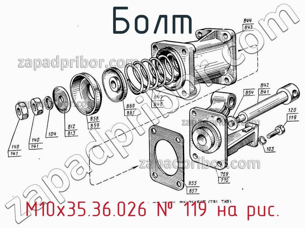 Компания гарантирует отсутствие каких-либо проблем у всех болтов, их комплектации и документации. Обратитесь в наш отдел продаж, если у вас есть потребность купить М10х35.36.026. Наши менеджеры всегда на связи, чтобы ответить на все ваши вопросы. Болт М10х35.36.026, номер 119 на чертеже, Контакт подвижной ПК-753Б6, ПК-753Б6Т (781, 782) и другие запасные части для , а также другие болты и похожие изделия представлены на сайте zapadpribor.com.