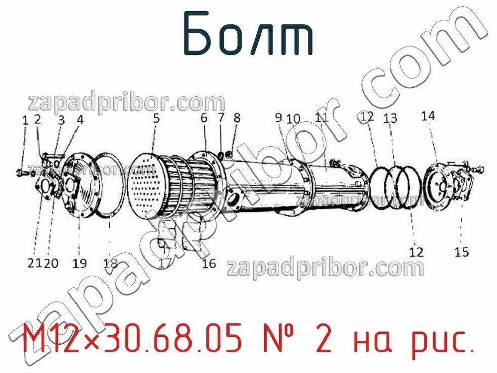 Наш отдел технического контроля гарантирует отсутствие брака и других несоответствий технической документации у всех болтов представленных на нашем сайте. По вопросам покупки М12×30.68.05 обращайтесь в отдел продаж. Для информации о цене, наличии, сроках поставки, сроке гарантии и по других вопросах обращайтесь по телефонам, указанным в контактах или оставьте запрос через форму обратной связи. Болт, номер 1 на чертеже, Охладитель водомасляный 2ОМК.000.18 и другие запасные части для 49 (Ч 26/26) , а также другие болты и похожие изделия представлены на сайте zapadpribor.com.