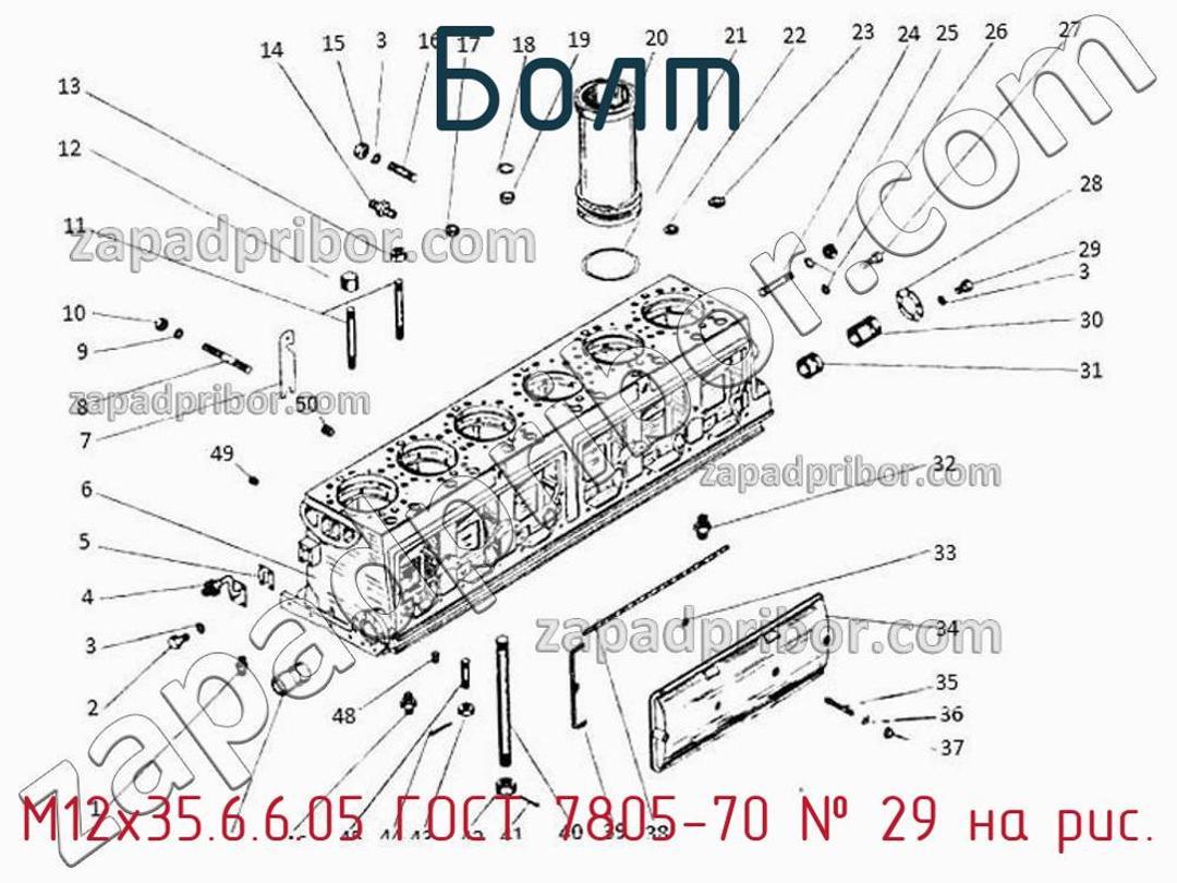 ОТК компании гарантирует отсутствие дефектов у всех болтов на нашем сайте. Для покупки М12х35.6.6.05 ГОСТ 7805-70 свяжитесь с отделом продаж. Менеджеры компании предоставят всю информацию о цене, наличии, сроках доставки, гарантии и ответят на любые другие вопросы. Болт М12х35.6.6.05 ГОСТ 7805-70, номер 29 на чертеже, Блок цилиндров 1Д50.01.001 и другие запасные части для ПДГ4А) , а также другие болты и похожие изделия представлены на сайте zapadpribor.com.