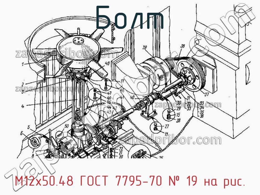 Мы даем гарантию на отсутствие брака или других несоответствий технической документации. Для приобретения М12х50.48 ГОСТ 7795-70 обращайтесь в наш отдел продаж. Информацию о цене, наличию, срокам доставки, гарантии и любые другие вопросы уточняйте у наших менеджеров. Болт М12х50.48 ГОСТ 7795-70, номер 19 на чертеже, Привод вентиляторов ТЭМ2 и другие запасные части для , а также другие болты и похожие изделия представлены на сайте zapadpribor.com.