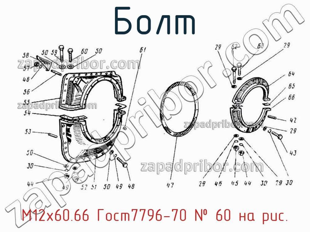 Компания гарантирует отсутствие каких-либо проблем у всех болтов, их комплектации и документации. Обратитесь в наш отдел продаж, если у вас есть потребность купить М12х60.66 Гост7796-70. Наши менеджеры всегда на связи, чтобы ответить на все ваши вопросы. Болт, номер 60 на чертеже, Привод уравновешивания 3-6Д49.10спч-03 ч. 2 и другие запасные части для 49 (Ч 26/26) , а также другие болты и похожие изделия представлены на сайте zapadpribor.com.