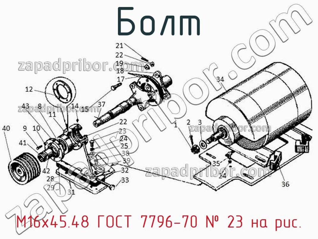 Наш отдел технического контроля в свою очередь гарантирует отсутствие какого-либо брака или других проблем с товаром в технической документации и т.д. Если хотите приобрести М16х45.48 ГОСТ 7796-70 – обратитесь в наш отдел продаж. Интересует цена, наличие товара, гарантийные условия или какая-либо дополнительная информация о товаре - обратитесь за указанным номером телефона. Болт М16х45.48 ГОСТ 7796-70, номер 23 на чертеже, Привод 2х машинного агрегата ТЭМ2.85.60.017 и другие запасные части для , а также другие болты и похожие изделия представлены на сайте zapadpribor.com.