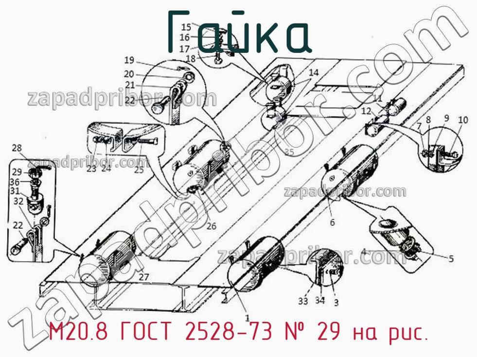 Наш ОТК гарантирует отсутствие брака у всех гаек представленных на нашем сайте. Для заказа М20.8 ГОСТ 2528-73 обращайтесь в отдел продаж. Информация о цене, наличии, сроках поставки, сроке гарантии и по других вопросах обращайтесь по телефонам, указанным в контактах или оставьте заявку через форму обратной связи. Гайка М20.8 ГОСТ 2528-73, номер 29 на чертеже, Установка воздушных резервуаров ТЭМ1.40.30.000 и другие запасные части для , а также другие гайки и похожие изделия представлены на сайте zapadpribor.com.