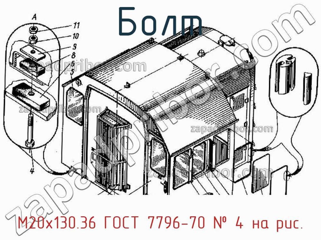Компания со своей стороны гарантирует отсутствие каких-либо дефектов, несовершенств или неточностей у комплектации и документации болта. М20х130.36 ГОСТ 7796-70 можно заказать, связавшись с нашим отделом продаж. Наши менеджеры всегда радостно предоставят вам всю информацию о товаре, его наличии, цене и т.д. Для этого позвоните по указанным телефонам или оставьте заявку через форму обратной связи. Болт М20х130.36 ГОСТ 7796-70, номер 4 на чертеже, Кабина машиниста с кузовом и другие запасные части для , а также другие болты и похожие изделия представлены на сайте zapadpribor.com.