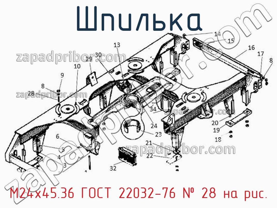 Мы даем гарантию на отсутствие брака или других несоответствий технической документации у всех шпилек. Для приобритения М24х45.36 ГОСТ 22032-76 - обратитесь в наш отдел продаж. Чтобы получить более подробную информацию о товаре, его доставке или у вас есть любой другой вопрос - позвоните нам и мы поможем вам окончательно определиться по поводу приобретения этого товара. Шпилька М24х45.36 ГОСТ 22032-76, номер 28 на чертеже, Рама тележки ТЭМ2 и другие запасные части для , а также другие шпильки и похожие изделия представлены на сайте zapadpribor.com.