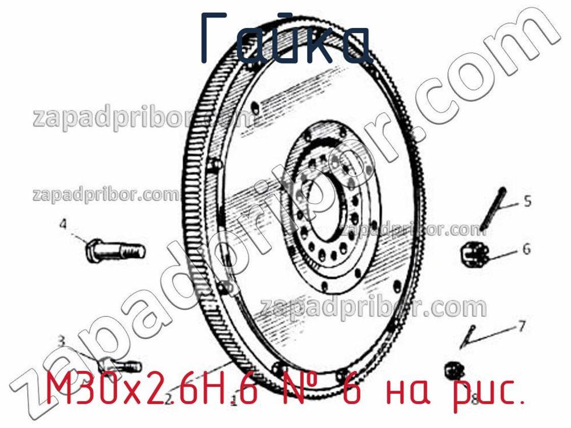 Мы даем гарантию на отсутствие брака или других несоответствий технической документации. По вопросам приобретения М30х2.6Н.6 обращайтесь в отдел продаж. Наши менеджеры предоставят всю интересующую Вас информацию по поводу цены, наличия, сроков доставки, гарантии или ответят на любые другие вопросы. Гайка, номер 6 на чертеже, Диск 74846спч-1 и другие запасные части для 49 (Ч 26/26) , а также другие гайки и похожие изделия представлены на сайте zapadpribor.com.