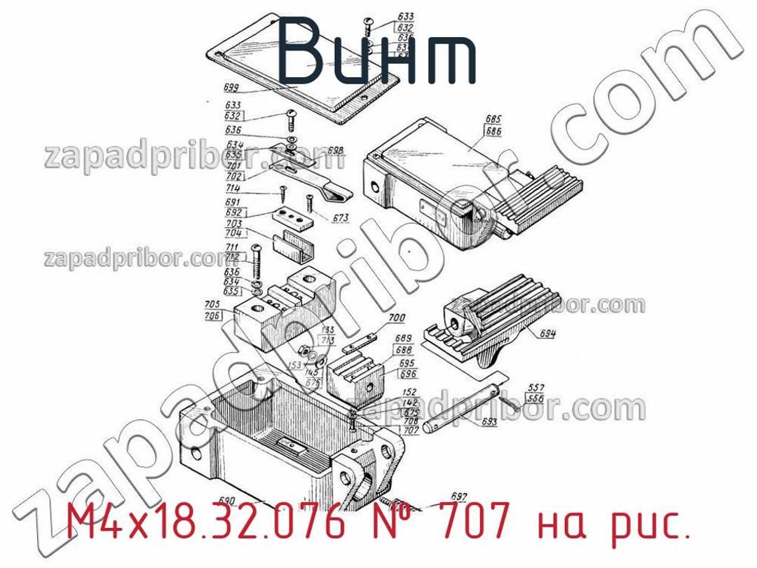 Наш отдел технического контроля гарантирует отсутствие брака и других несоответствий технической документации у всех винтов представленных на нашем сайте. По вопросам покупки М4х18.32.076 обращайтесь в отдел продаж. Для информации о цене, наличии, сроках поставки, сроке гарантии и по других вопросах обращайтесь по телефонам, указанным в контактах или оставьте запрос через форму обратной связи. Винт М4х18.32.076, номер 707 на чертеже, Выключатель кнопочный ножной КН-2А, КН-2АТ и другие запасные части для , а также другие винты и похожие изделия представлены на сайте zapadpribor.com.
