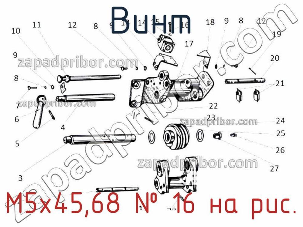 ОТК компании гарантирует отсутствие брака у всех винтов представленных на нашем сайте. Для покупки М5х45,68 обратитесь в отдел продаж. Относительно информации о цене, наличии, сроках поставки, гарантии обращайтесь по телефонам, указанным в контактах или оставьте запрос через форму обратной связи. Винт, номер 16 на чертеже, Механизм валоповоротный 6Д49.39спч-1 и другие запасные части для 49 (Ч 26/26) , а также другие винты и похожие изделия представлены на сайте zapadpribor.com.
