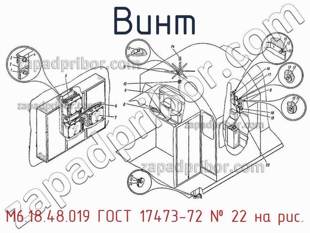Наш отдел технического контроля дает гарантию отсутствия брака или других несоответствий в технической документации у всех винтов представленных на нашем сайте. Чтобы приобрести М6.18.48.019 ГОСТ 17473-72 обратитесь в отдел продаж. Информацию о цене, наличии, сроках поставки, гарантии можно узнать у наших менеджеров. Винт, номер 22 на чертеже, Установка радиостанции и другие запасные части для , а также другие винты и похожие изделия представлены на сайте zapadpribor.com.