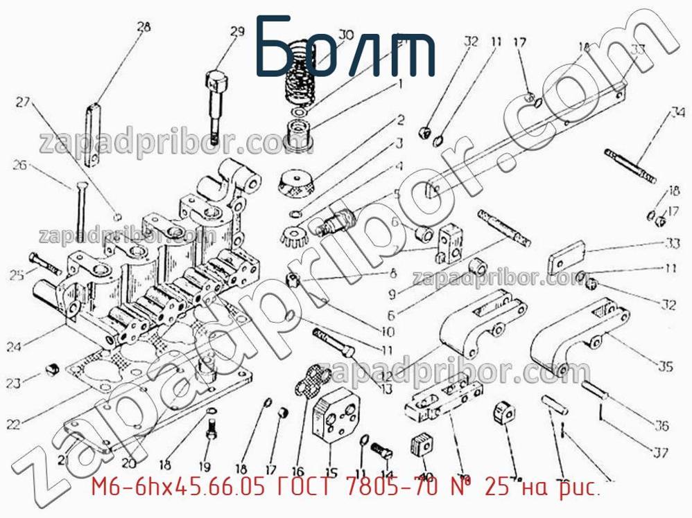 Наш отдел технического контроля гарантирует отсутствие брака и других несоответствий технической документации у всех болтов представленных на нашем сайте. По вопросам покупки М6-6hх45.66.05 ГОСТ 7805-70 обращайтесь в отдел продаж. Для информации о цене, наличии, сроках поставки, сроке гарантии и по других вопросах обращайтесь по телефонам, указанным в контактах или оставьте запрос через форму обратной связи. Болт М6-6hх45.66.05 ГОСТ 7805-70, номер 25 на чертеже, Управление регулятором 43гр.-048 и другие запасные части для ПДГ4А) , а также другие болты и похожие изделия представлены на сайте zapadpribor.com.