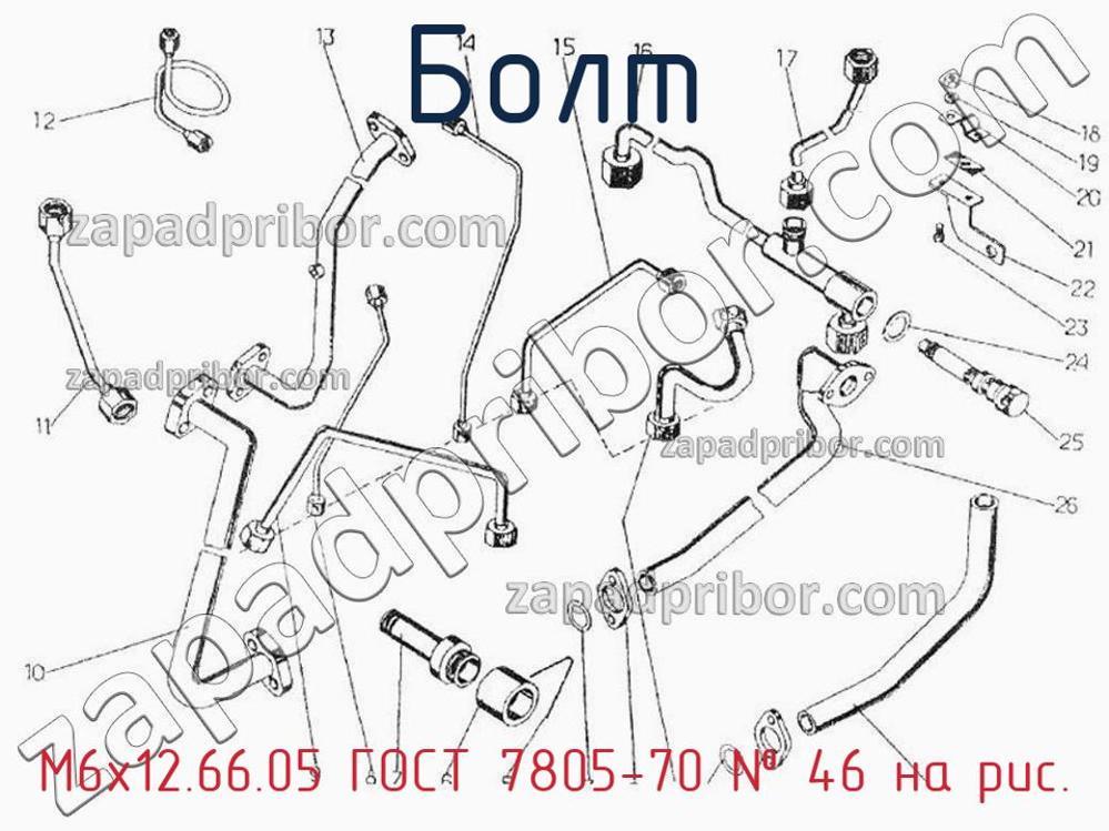 Наш отдел технического контроля гарантирует отсутствие брака или других несоответствий в технической документации или комплектации всех болтов представленных на нашем сайте. Чтобы заказать М6х12.66.05 ГОСТ 7805-70 обращайтесь в отдел продаж. Чтобы узнать цену, наличие, сроки поставки, срок гарантии и другие вопросы позвоните по телефонам указанным в контактах или оставьте заявку через форму обратной связи. Болт М6х12.66.05 ГОСТ 7805-70, номер 23 на чертеже, Трубопровод масляный Д50.20 и другие запасные части для ПДГ4А) , а также другие болты и похожие изделия представлены на сайте zapadpribor.com.