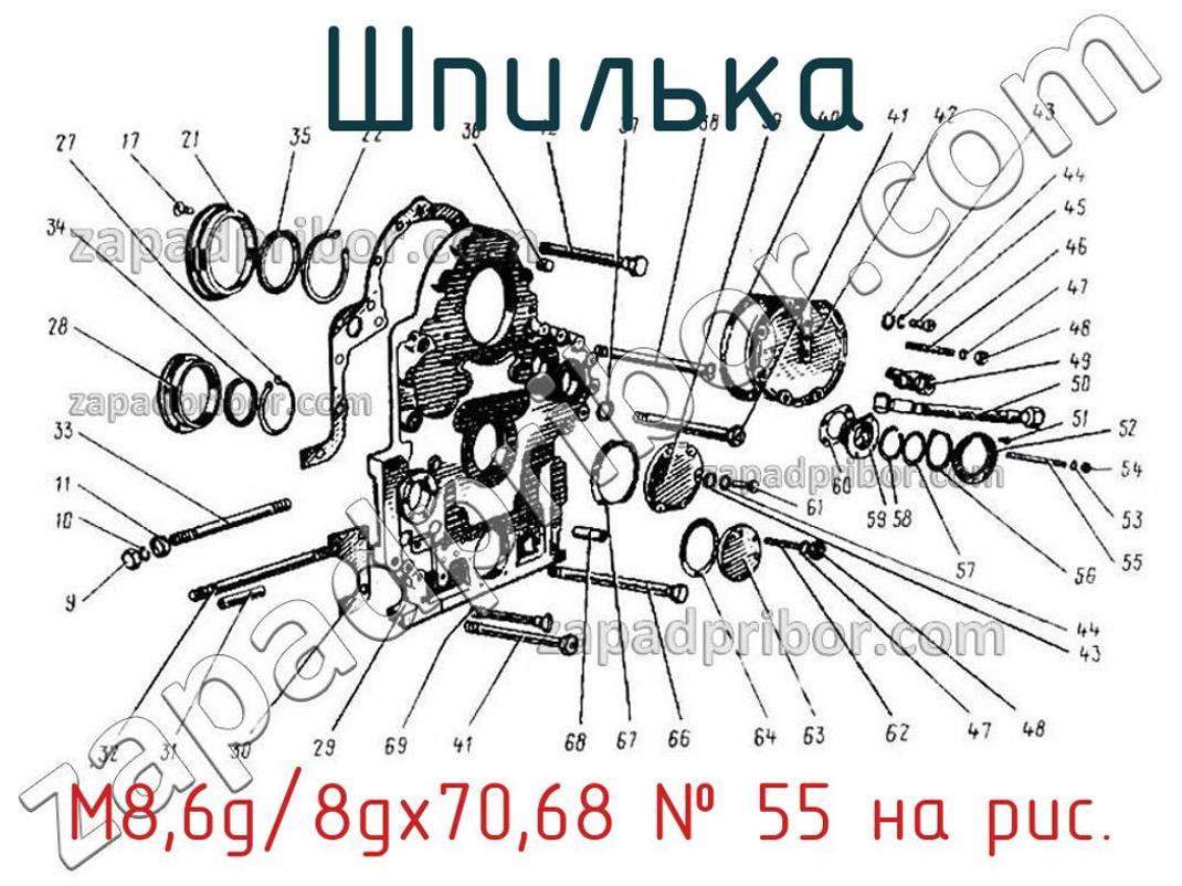 Мы даем гарантию на отсутствие брака или других несоответствий технической документации. Для приобретения M8,6g/8gx70,68 обращайтесь в наш отдел продаж. Информацию о цене, наличию, срокам доставки, гарантии и любые другие вопросы уточняйте у наших менеджеров. Шпилька, номер 55 на чертеже, Привод распределительного вала 3А-6Д49.69спч и другие запасные части для 49 (Ч 26/26) , а также другие шпильки и похожие изделия представлены на сайте zapadpribor.com.