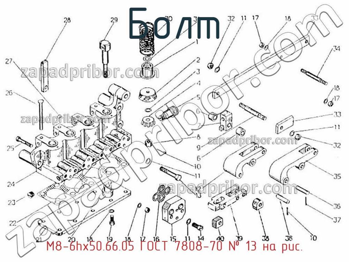 Наш ОТК гарантирует отсутствие брака у всех болтов представленных на нашем сайте. Для заказа М8-6hх50.66.05 ГОСТ 7808-70 обращайтесь в отдел продаж. Информация о цене, наличии, сроках поставки, сроке гарантии и по других вопросах обращайтесь по телефонам, указанным в контактах или оставьте заявку через форму обратной связи. Болт М8-6hх50.66.05 ГОСТ 7808-70, номер 13 на чертеже, Управление регулятором 43гр.-048 и другие запасные части для ПДГ4А) , а также другие болты и похожие изделия представлены на сайте zapadpribor.com.