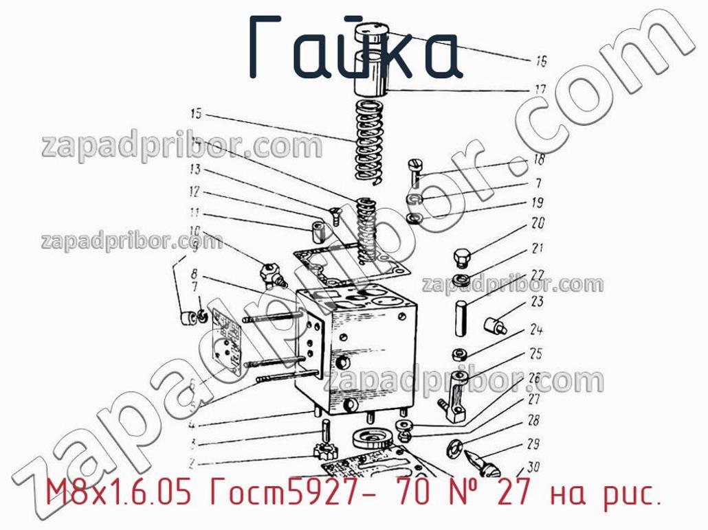 Наш ОТК гарантирует отсутствие брака у всех гаек представленных на нашем сайте. Для заказа М8х1.6.05 Гост5927- 70 обращайтесь в отдел продаж. Информация о цене, наличии, сроках поставки, сроке гарантии и по других вопросах обращайтесь по телефонам, указанным в контактах или оставьте заявку через форму обратной связи. Гайка, номер 27 на чертеже, (1-31) Регулятор 2Д100.36.1СБ и другие запасные части для 49 (Ч 26/26) , а также другие гайки и похожие изделия представлены на сайте zapadpribor.com.